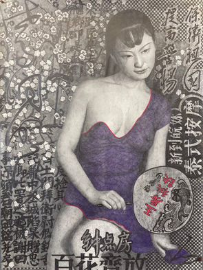 Jie Qiu became internationally known for his lavish large format graphite drawings. The artist collects the visual advertising material that is constantly surrounding us, anything from catalogs for buying clothes to the labels on packets of spaghetti. Oriented by a certain nostalgia for the country of his birth, his subjects reach him via his life and also by chance. Over several months of time, he then assembles these materials into carefully arranged compositions. He often begins with a magazine photo of a young woman whose pose inspires him to place her in a decorative scheme he designs just for her.