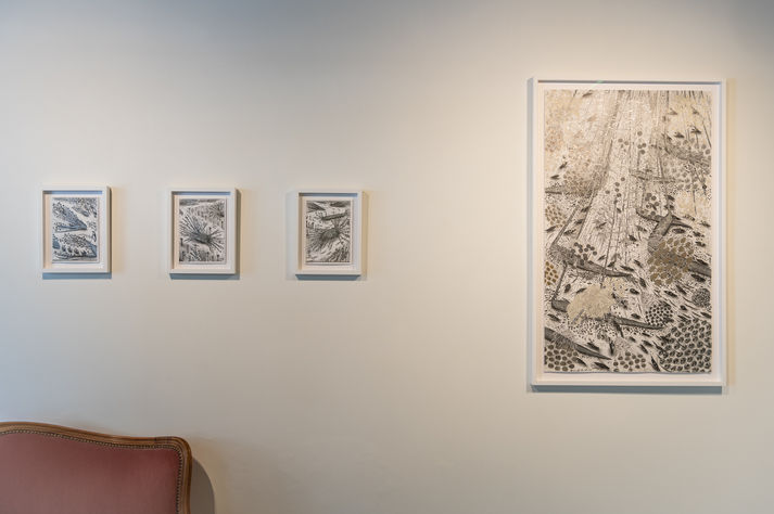 Le Salon Vert is delighted to present its summer exhibition « Sonnet » which brings together three women artists and one artist couple. They take us on a poetic journey by using beauty as a path to investigate illusion, transience and fragility. When contemplating the artworks of Susanna Bauer, HIPKISS, Isabelle Menin and Kate Montgomery, time seems to stand still, at least for a while. Their unique artistic styles which are charged - due to the very individual and time-consuming work process - come up with features evoking a kind of baroque symbolism. Strange creatures, fragments of nature, bizarre flowers and timeless silent scenes may open to a darker interpretation. But the expression of melancholy, of a possible morbidity, invites us to take a closer look and to realize how through art we can find catharsis and serenity.